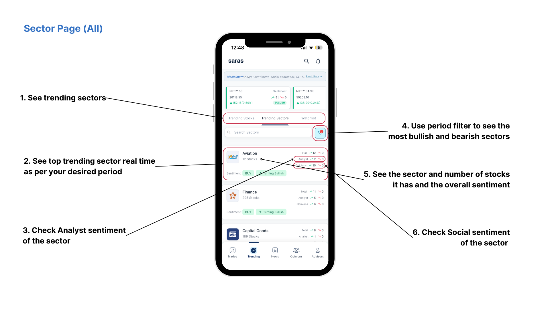 - Trending Sectors: See Trending Sectors (Most Bullish / Most Bearish) on top.